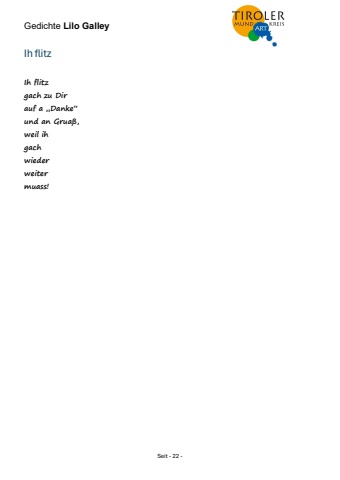 Gedichte Lilo Galley Seit - 22 - Ih flitz Ih flitz gach zu Dir auf a %u201eDanke%u201c und an Grua%u00df, weil ih gach wieder weiter muass!