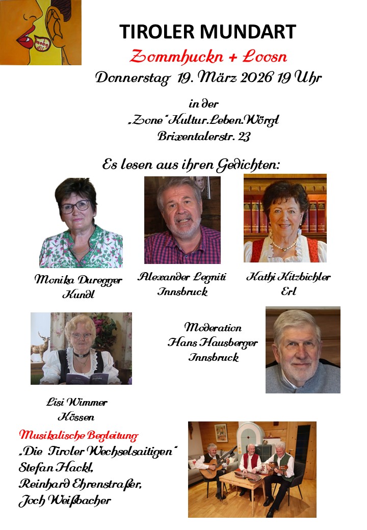 am Donnerstag 19. März 2026 um 19 Uhrin „Zone“ Kultur.Leben.Wörgl (Brixentalerstr. 23)www.zone-woergl.com